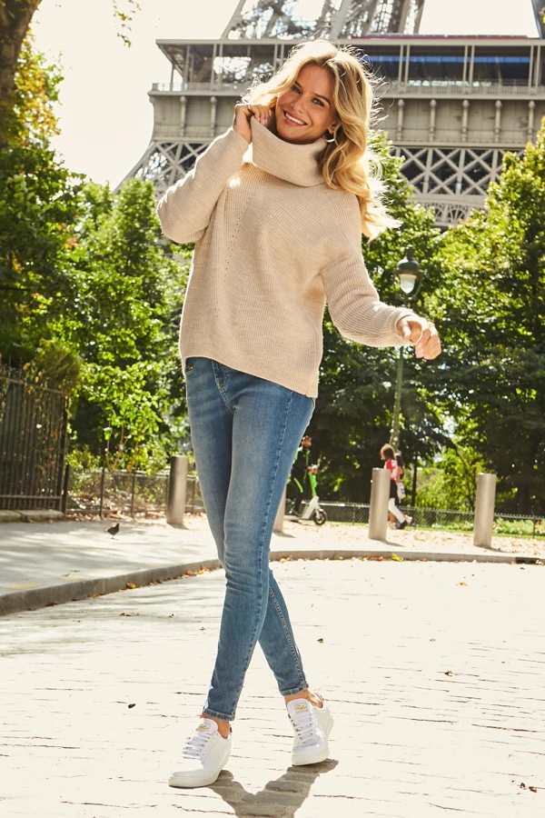 - Ribbed knit and roll neck for extra warmth